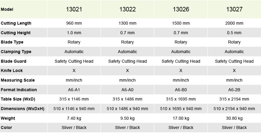 The manual rotary trimmers of high-quality steel material with both ends in style and tough ABS for the standard sizes from A4 - 2B are equipped with an changeable rotary blade of stainless steel.
